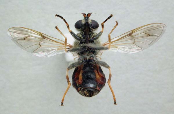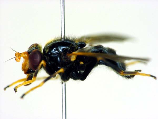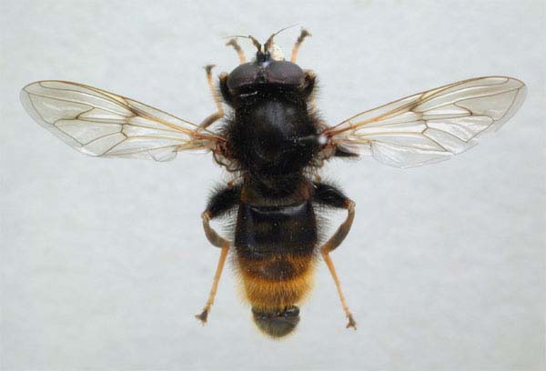 トゲモンハナアブMacrozelima (キバラナガハナアブ属)